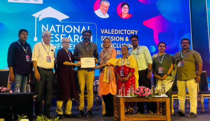 Farook College (Autonomous), Kozhikode has been honoured with the Best Exhibition Stall Award at the National Research Conference & Kerala Higher Education Expo 2026, organised by the Department of Higher Education, Government of Kerala and the Kerala State Higher Education Council (KSHEC).The prestigious recognition was conferred in appreciation of the clarity, quality, innovation, and overall impact of the College’s research presentation among 59 participating institutions.